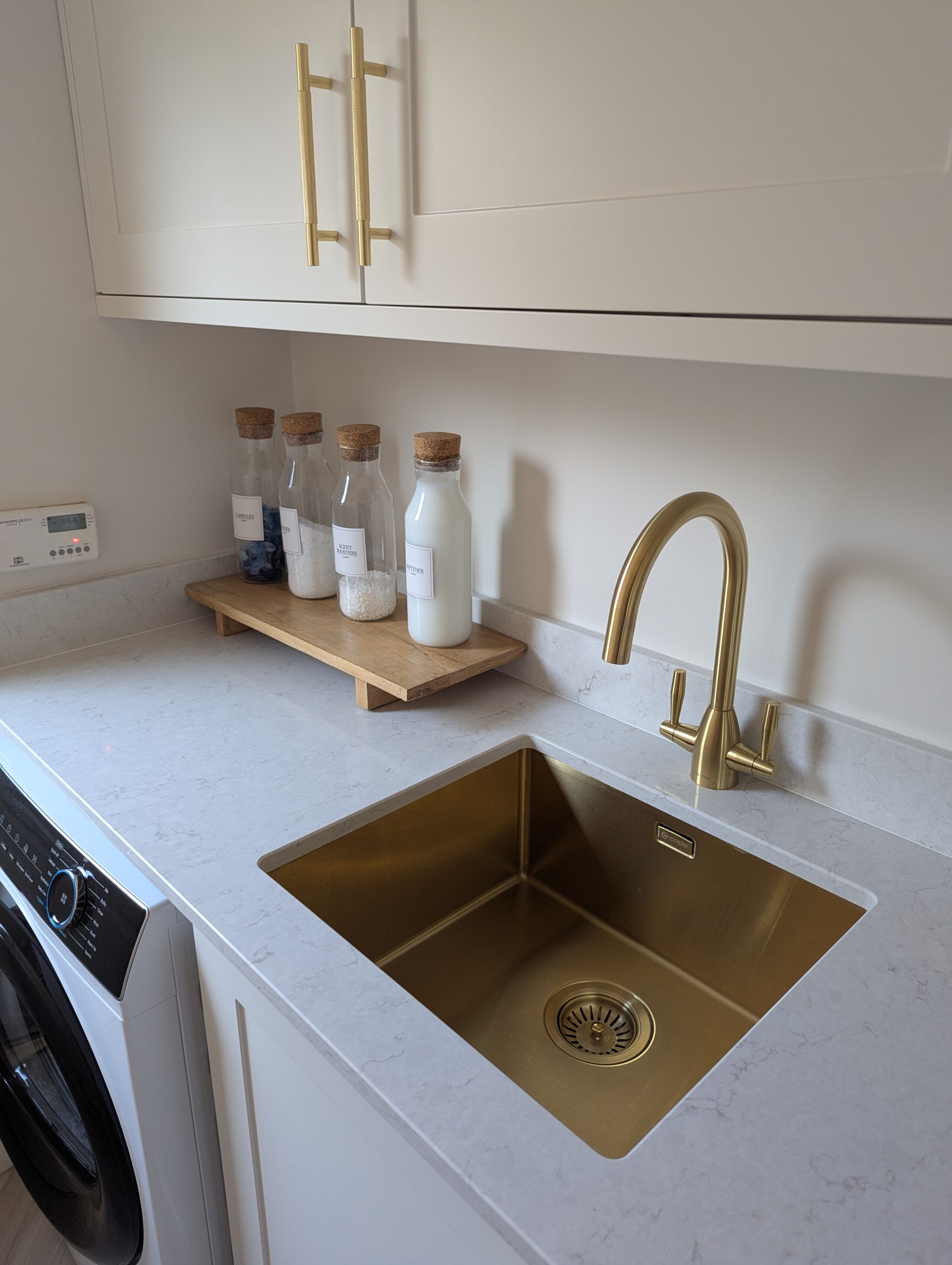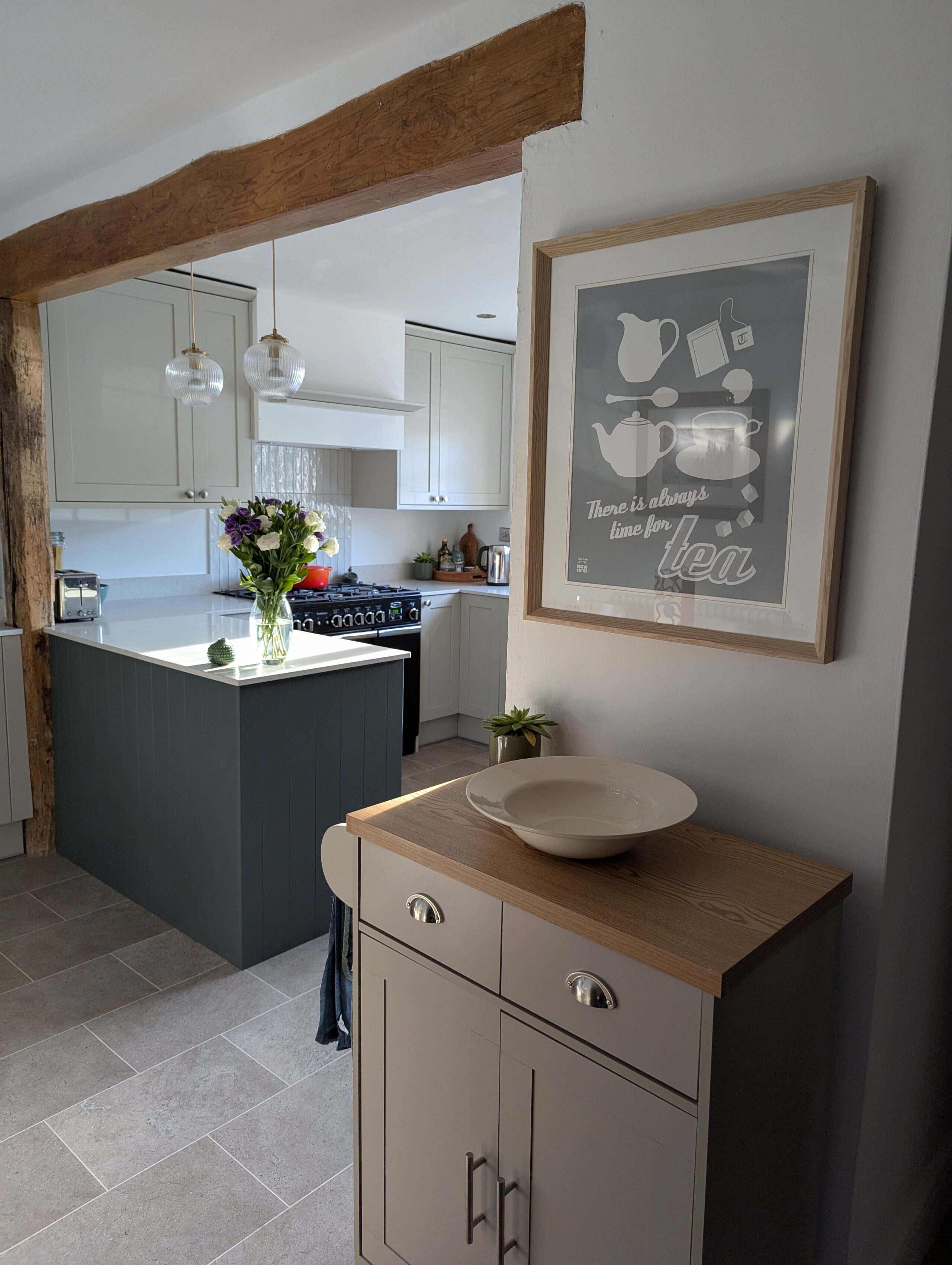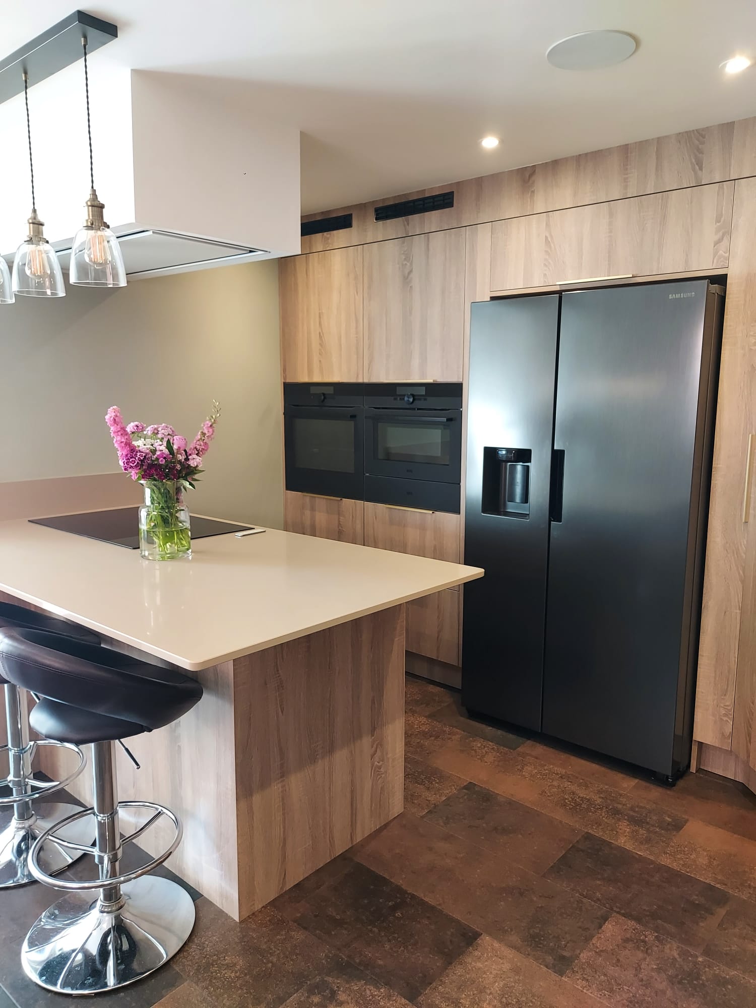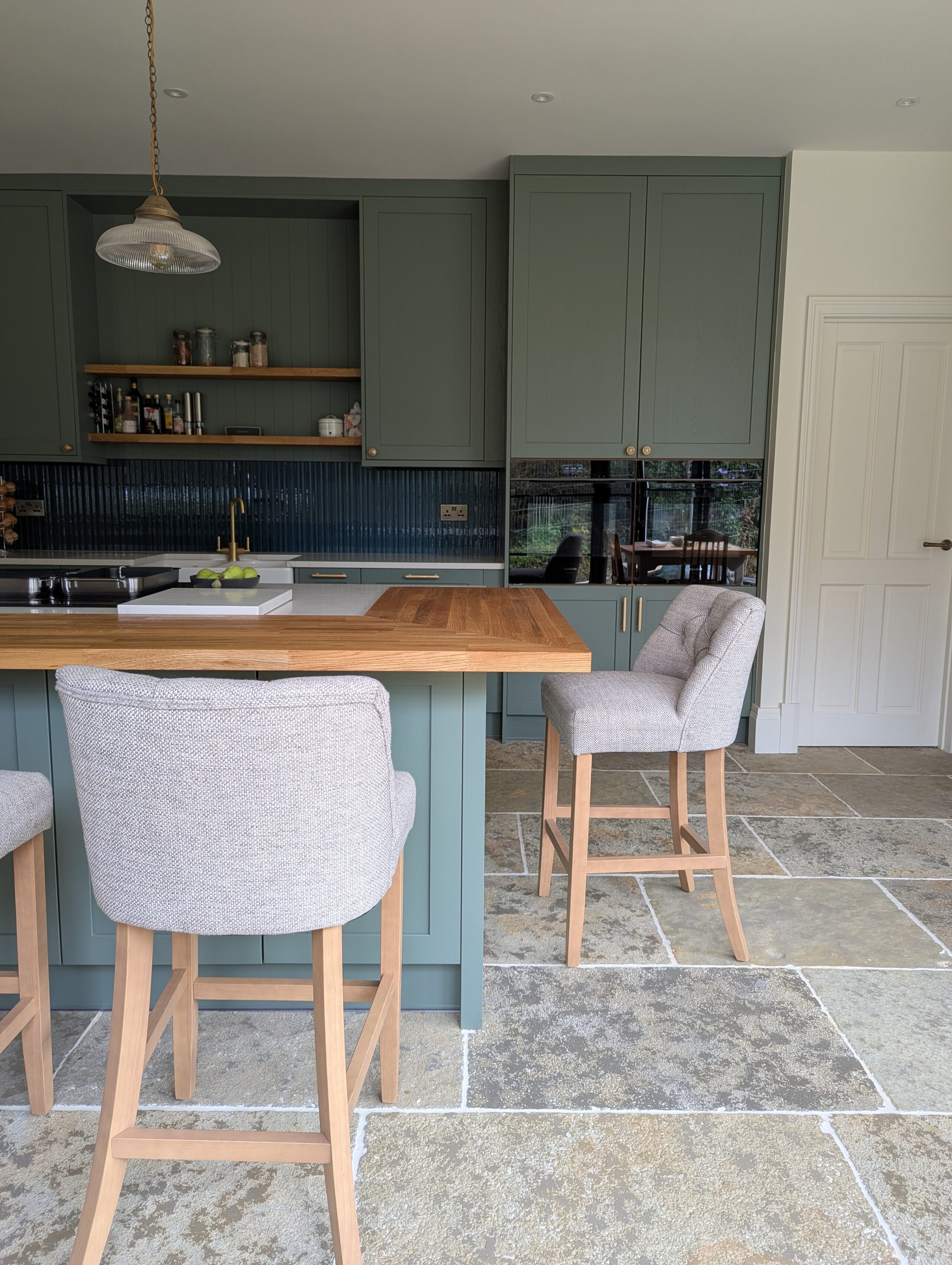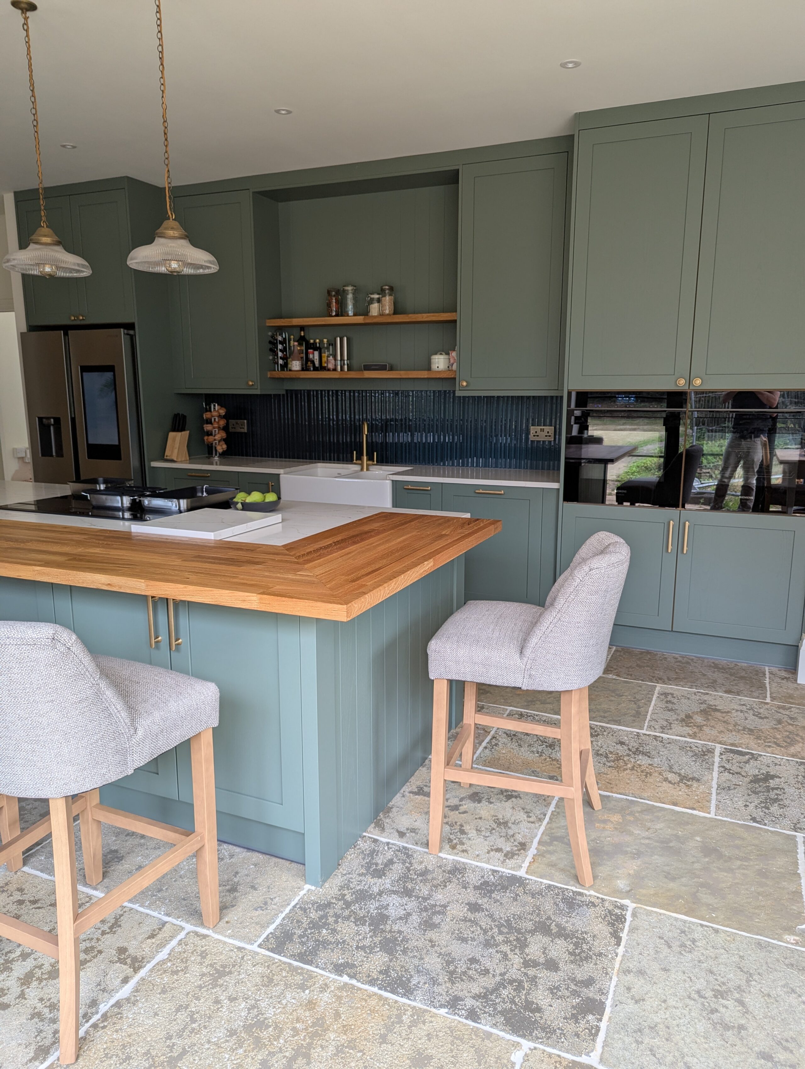 This warm and inviting kitchen by Alex Lee Kitchens brings together classic framed cabinetry, natural textures, and a beautifully balanced layout that suits busy everyday living.
