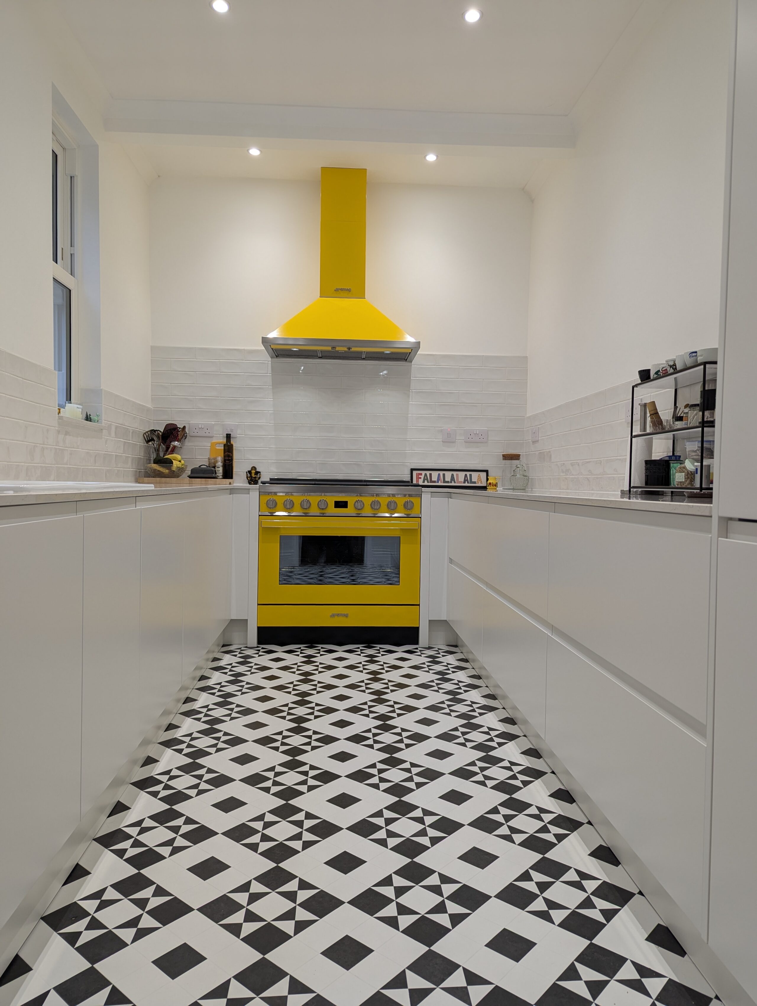This vibrant kitchen by Alex Lee Kitchens celebrates modern simplicity with a bold playful twist.