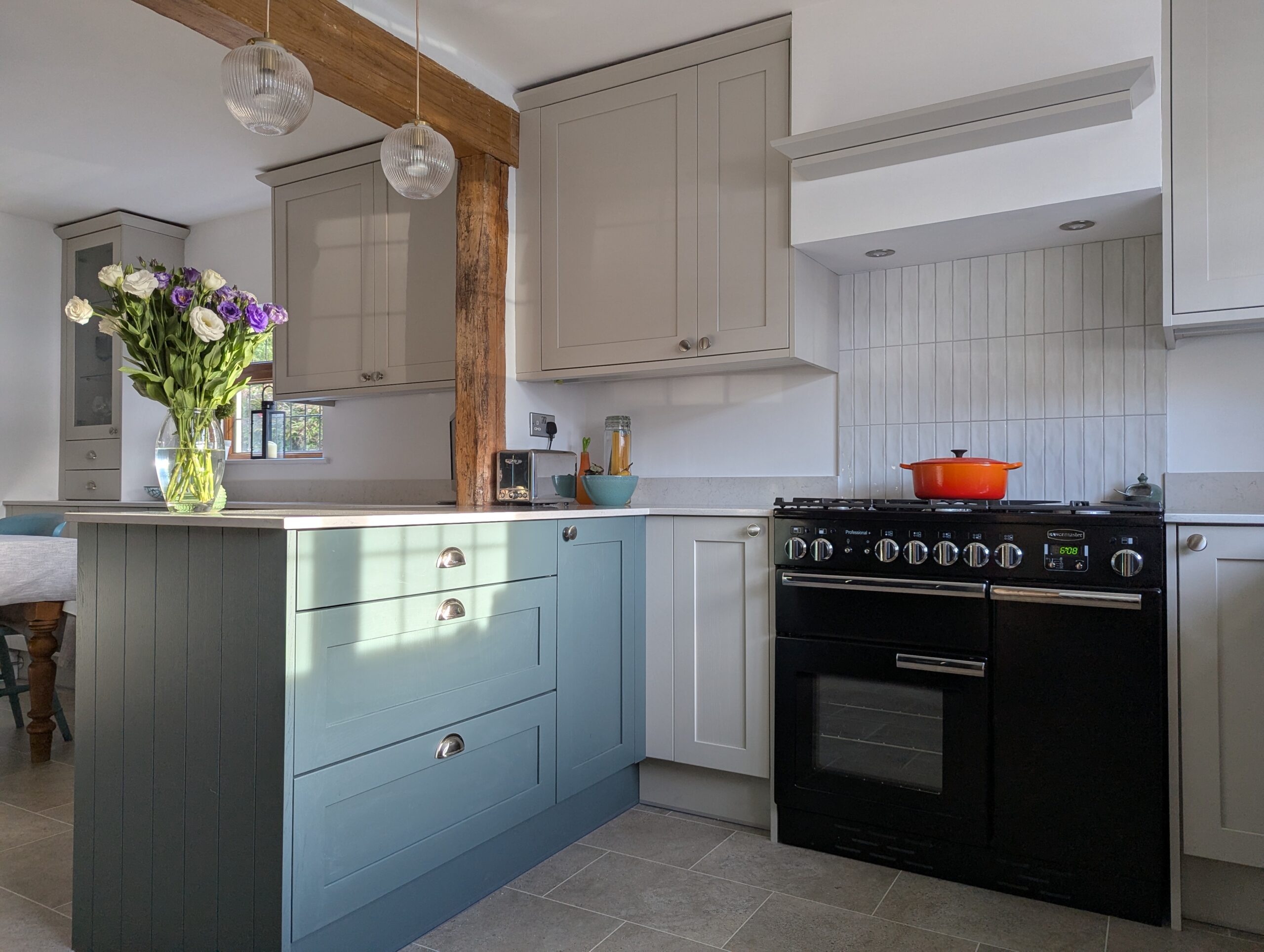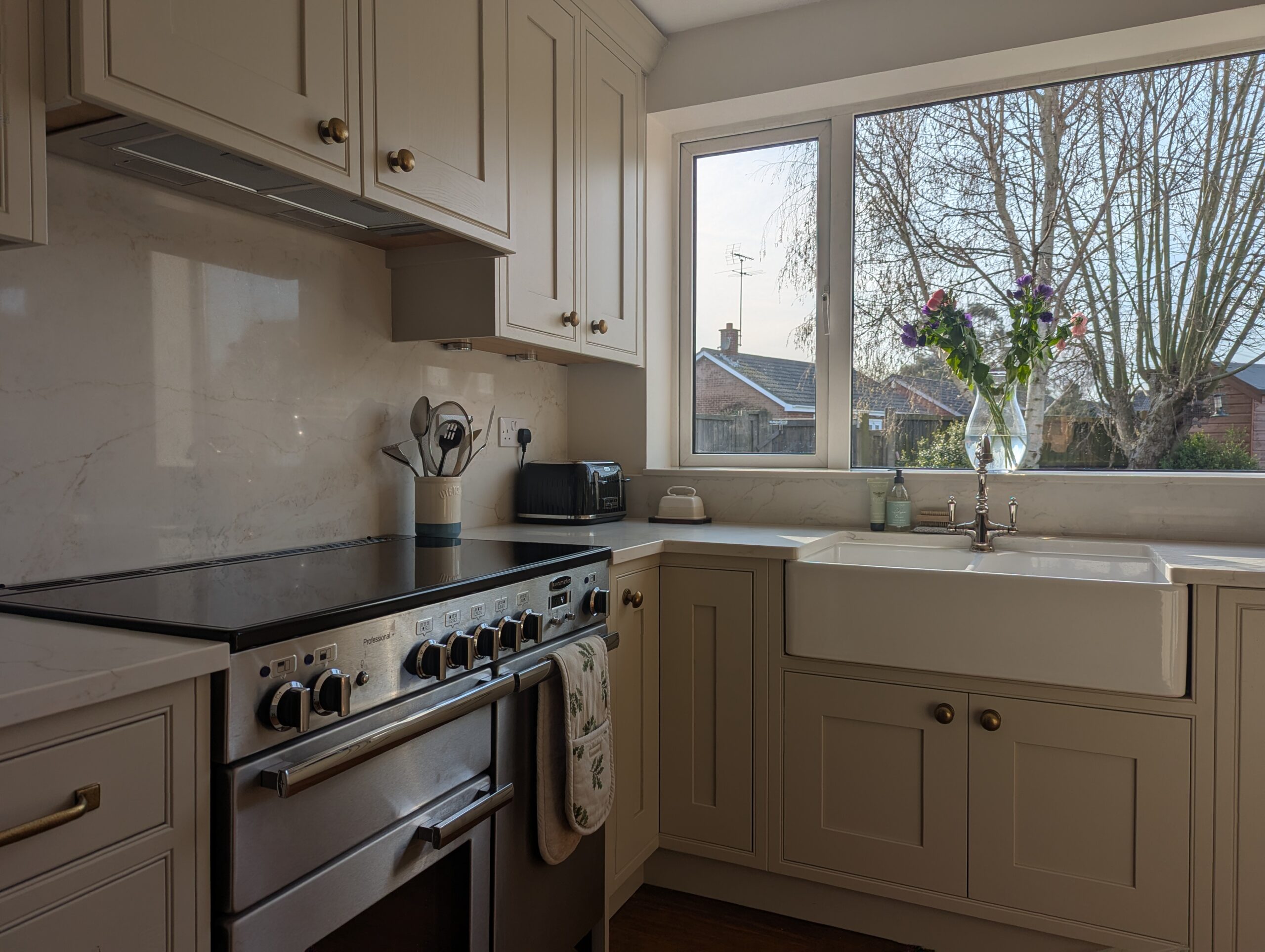 This beautifully refined kitchen by Alex Lee Kitchens brings together soft painted cabinetry, generous natural light, and an effortless sense of calm.